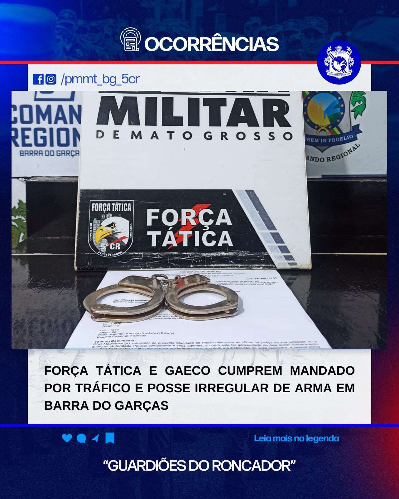 FORÇA TÁTICA E GAECO CUMPREM MANDADO POR TRÁFICO E POSSE IRREGULAR DE ARMA EM BARRA DO GARÇAS