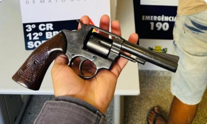 Uma arma de fogo foi encontrada dentro da mochila de uma criança de 8 anos, em uma escola municipal de Sorriso, a 420 km de Cuiabá, nessa sexta-feira (2). O objeto foi encontrado pela diretora da unidade, que acionou a Polícia Militar.