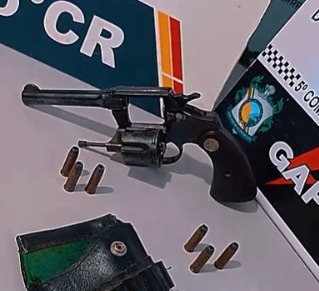 Ao revistar o local do fato, uma ama arma de fogo foi apreendida pela Polícia Militar.