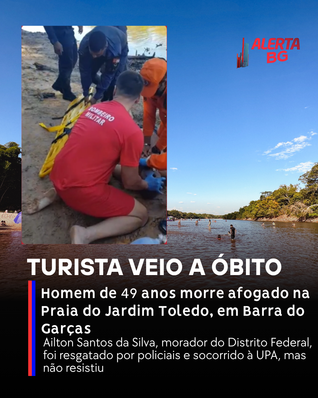 Um homem de 49 anos morreu após se afogar na tarde desta quarta-feira (17), na Praia do Jardim Toledo, em Barra do Garças (MT). Ele foi identificado como Ailton Santos da Silva, morador do Distrito Federal.