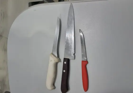 Durante a abordagem, os policiais apreenderam três facas utilizadas na confusão, além de diversas garrafas e latas de bebidas alcoólicas, evidenciando o consumo excessivo de álcool no local.
