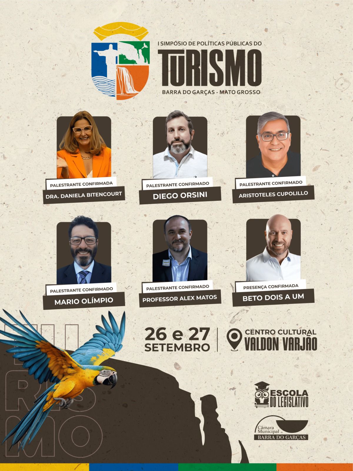O evento reunirá especialistas renomados no setor turístico e acadêmico, que trarão reflexões e propostas para fortalecer o turismo local e regional. Estão confirmados como palestrantes: