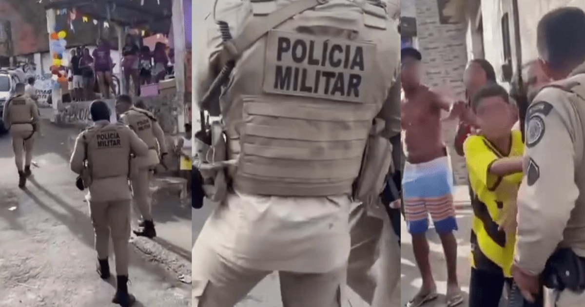 Uma festa de Dia das Crianças terminou em confusão no bairro de Pirajá, em Salvador, na tarde deste domingo (12). Durante o evento, um policial militar deu um tapa no rosto de uma mulher, em meio a uma discussão, na Rua Baixa da Fonte. A cena foi registrada em vídeo por moradores e circula nas redes sociais.