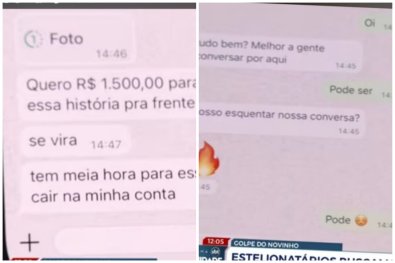 Segundo ela, uma pessoa se passando por delegado da Polícia Civil a ameaçou que iria revelar um suposto caso de assédio. “Eu recebi a foto no dia que um suposto delegado entrou em contato comigo. Eu recebi uma mensagem no WhatsApp de uma pessoa que se passava como delegado do Rio Grande do Sul, dizendo que familiares da pessoa, do menino, tinham procurado a delegacia, dizendo que tinham encontrado fotos íntimas no celular do menino, né? E esse delegado dizia que a família estava lá, desesperada, porque falou que o menino ia se matar, que ele sofria de transtorno de depressão. E aí, esse suposto delegado queria que eu fizesse uma transferência em dinheiro para ajudar a pagar os custos de tratamento desse menino”, contou a vítima ao SBT Cuiabá, nesta terça-feira (14).