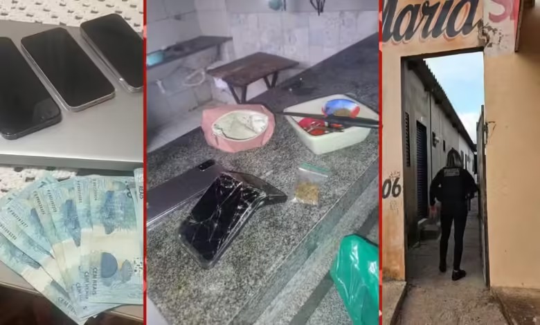 Durante as buscas nesta quinta-feira (27), os policiais apreenderam um notebook prata, R$ 3.081,00 em dinheiro, 23 aparelhos celulares, porções de maconha, além de uma motocicleta e um automóvel.