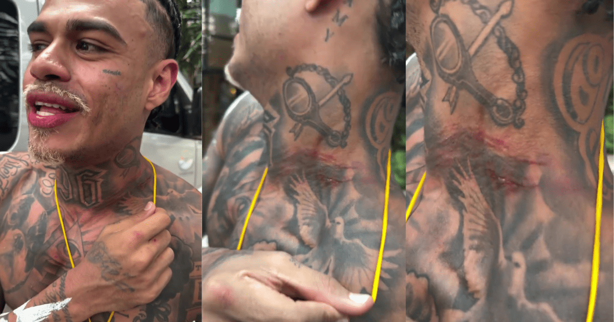 Em um vídeo publicado nos stories, o artista de 29 anos conta que a abordagem ocorreu enquanto ele deixava o evento, que estava, segundo ele, “lotadão”. Cabelinho aparece mostrando dois cortes no pescoço e diz que os machucados foram causados quando tentaram arrancar seu cordão.
