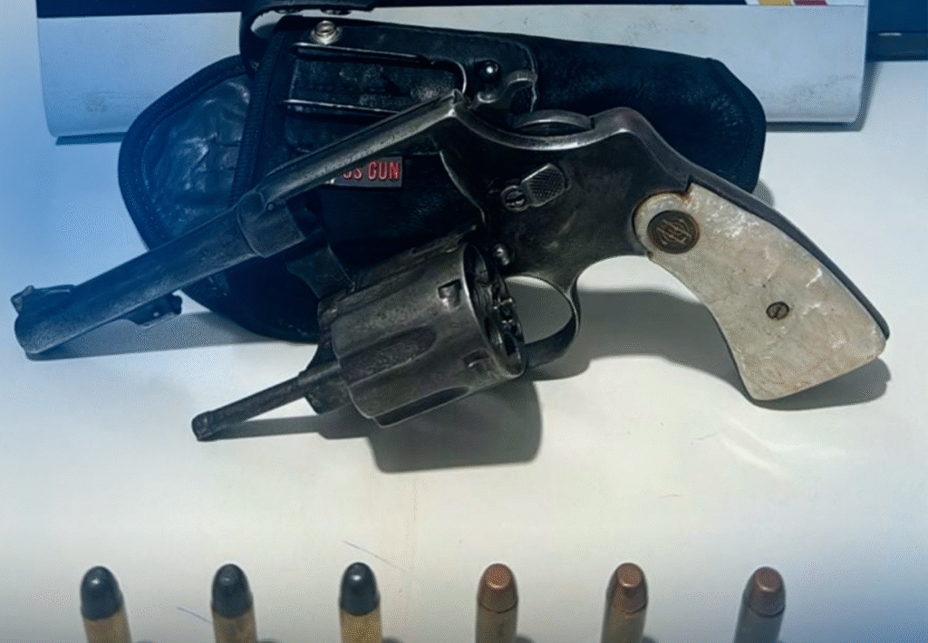 Durante a abordagem e revista pessoal, os militares encontraram na cintura do homem um revólver calibre .38 da marca Taurus com numeração suprimida, além de seis munições intactas.