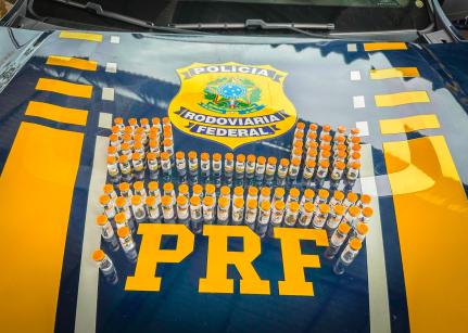 Durante a fiscalização, a equipe realizou busca pessoal e vistoria no veículo, encontrando diversos frascos de medicamentos escondidos junto ao corpo da passageira e nos bolsos do condutor.