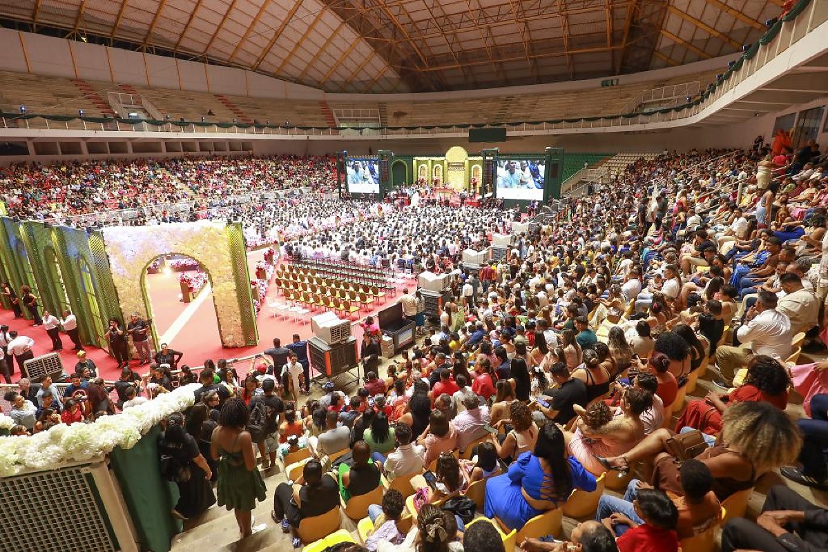 O sonho do casamento tornou-se realidade para mais de 900 casais neste domingo (22.2), durante o Casamento Abençoado promovido pelo Governo de Mato Grosso. A cerimônia foi realizada no Ginásio Aecim Tocantins e reuniu casais de 24 municípios mato-grossenses em uma celebração marcada por emoção e significado social.