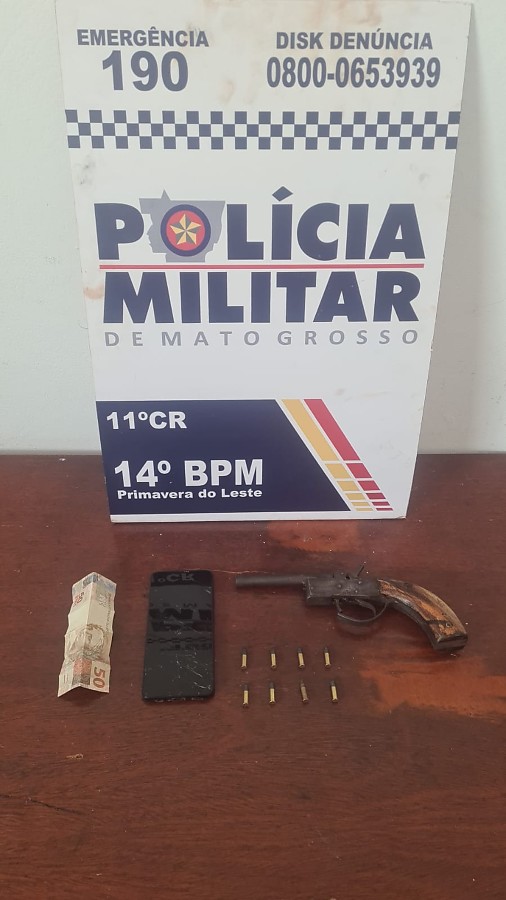 Uma ação da Polícia Militar resultou na apreensão de uma arma de fogo e na condução de um suspeito na manhã desta segunda-feira 16, no Assentamento Rio Café, em Primavera do Leste.