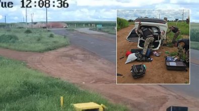 As imagens mostram o veículo desgovernado rodando e capotando várias vezes até parar virado, acabando ali mesmo com a fuga. Segundo o boletim de ocorrência da Polícia Militar, a confusão começou em Sinop (500 km de Cuiabá), quando o jovem partiu pra cima de uma oficial de Justiça, de 55, durante o cumprimento de um mandado de busca e apreensão do carro. Depois da agressão, ele meteu o pé e deu início à perseguição.