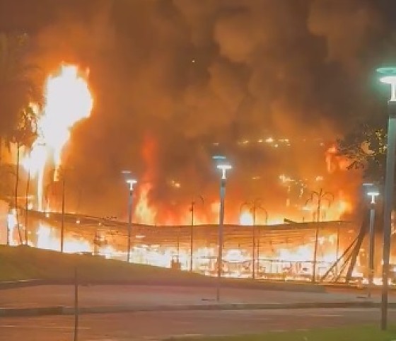 Em vídeos compartilhados nas redes sociais, é possível ver o tamanho das chamas e, ao que tudo indica, o fogo começou na parte da frente do estabelecimento.